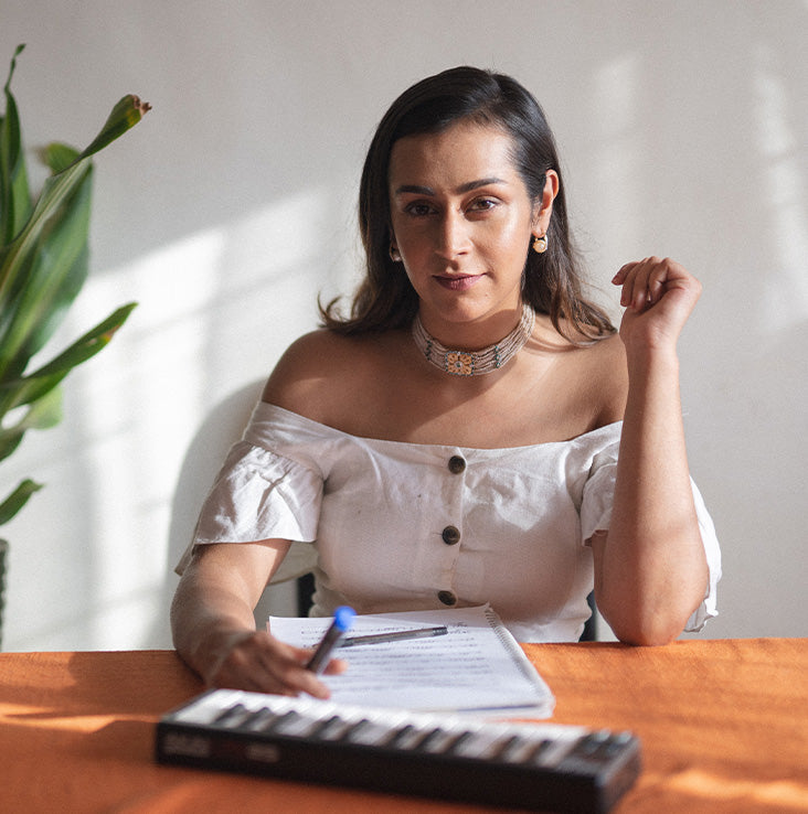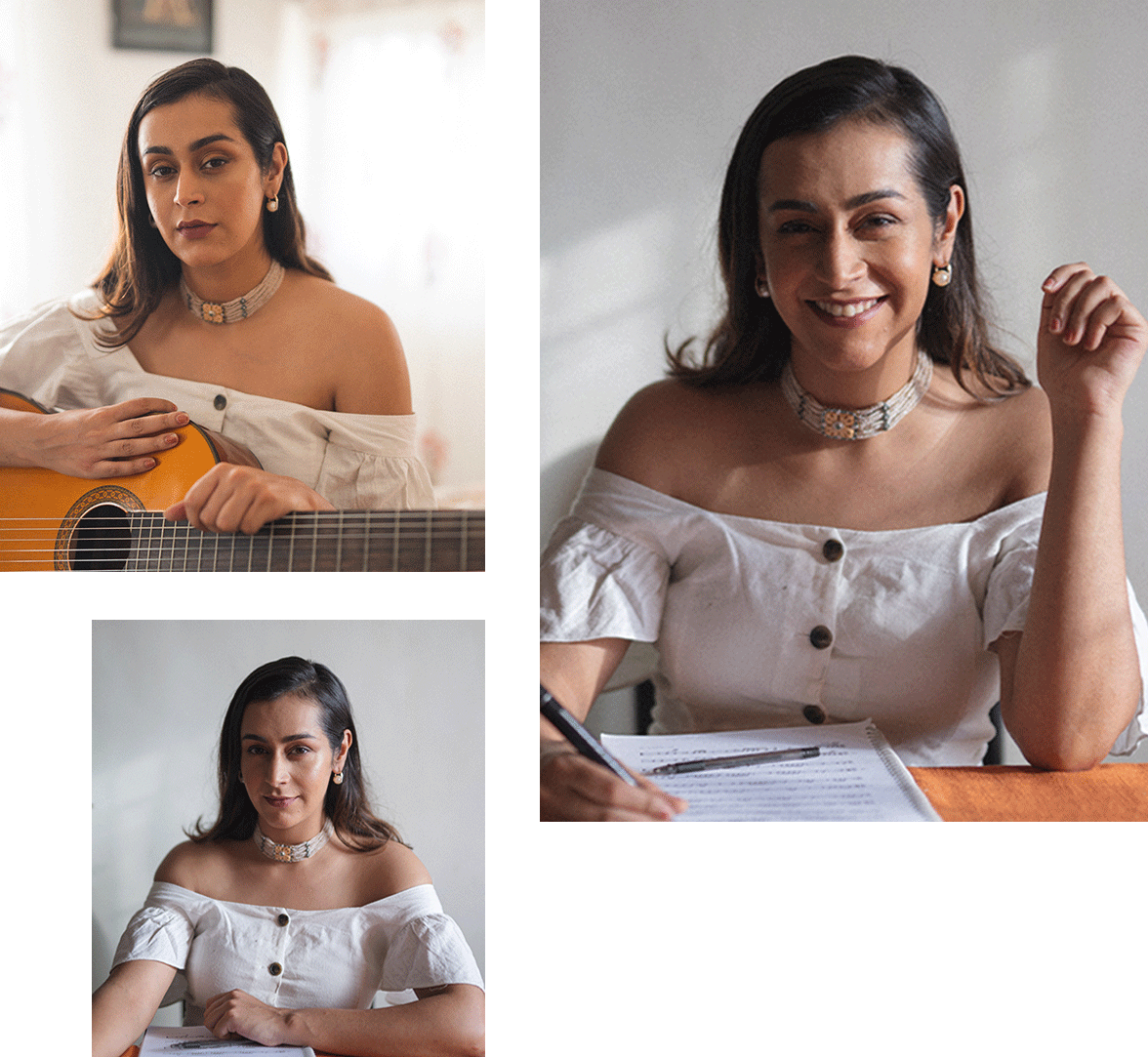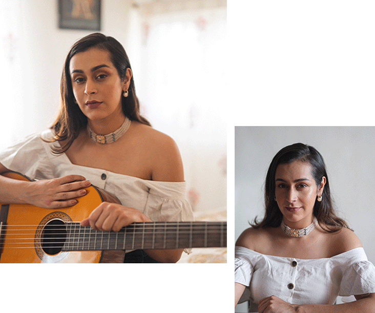 She introduces herself as a musician by profession. She loves her mom's big chunky earrings. Relatable is her vibe.