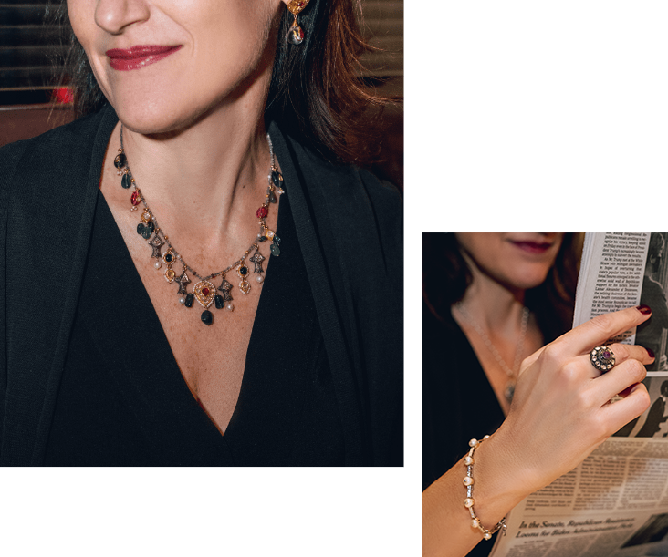 P - Absolutely. I have special pieces that I rotate, along with a few that I wear almost daily, like my mother’s wedding band and a thin gold necklace I’ve worn since I was 15.