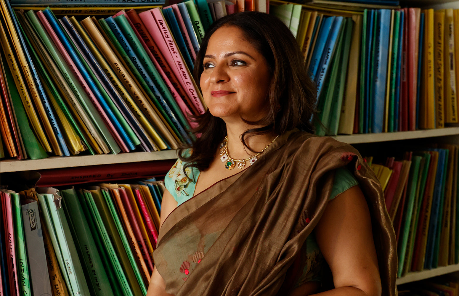 P - I like to mix style sensibilities. I have lived abroad in my 20s and travel extensively but I love Indian drapes, colours and textiles. My style is a reflection of these two worlds I straddle – a handwoven sari worn with a tank top, waistcoat or short tuxedo jacket; minimal but meaningful jewelry; kajal every day. My choice of what I wear to work is based on two simple principles 1. What I look good in and therefore feel confident in 2. Is it something I can wear to look presentable should an unexpected meeting come up or an event that I have to go to straight from work.