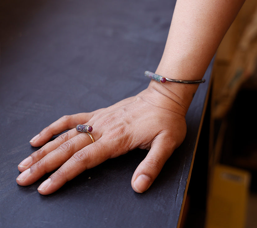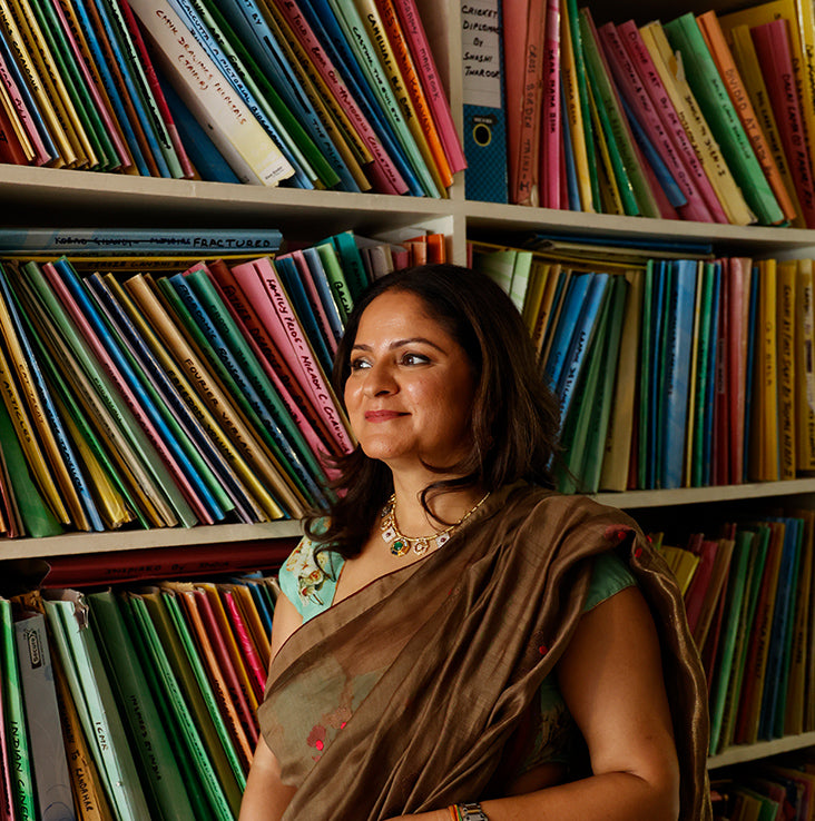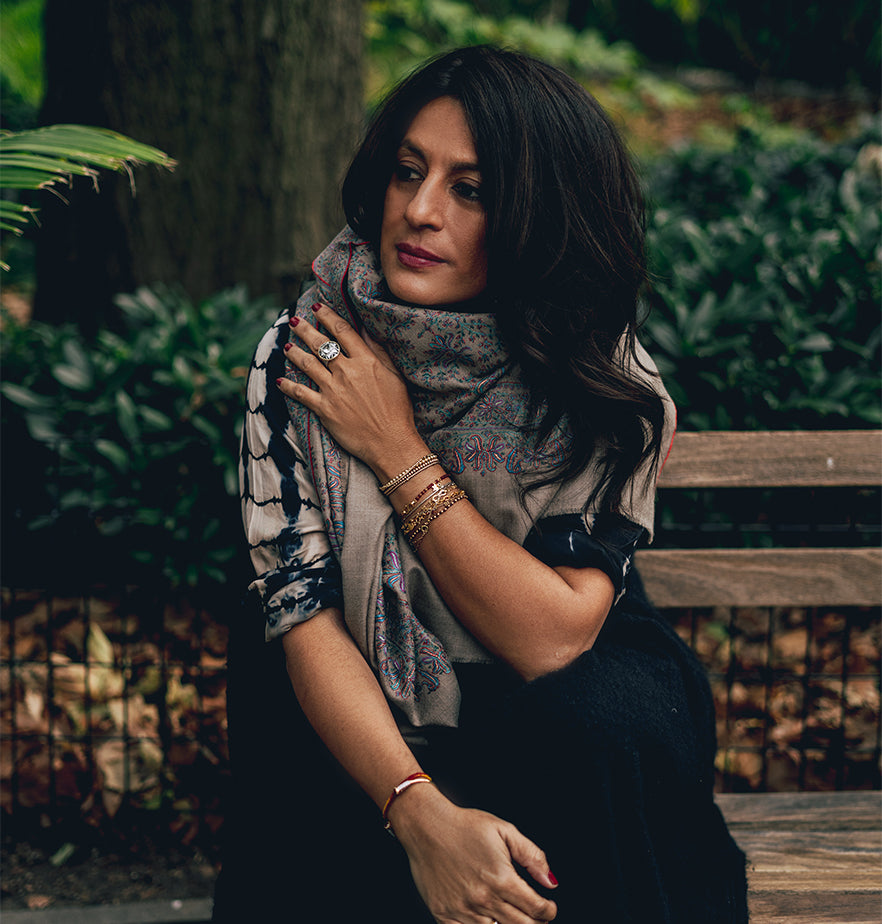 P - My favourite piece is my engagement ring which my husband designed and kept a secret for months. Unconventionally it is not a diamond but an emerald (my favourite color). I have worn it every single day for the past 7 years and feel lost without it. I love jewelry and wear pieces every day—from the playful to the traditional. I also don’t believe in saving expensive jewelry for very specific occasions and have worn a polki hasli with a simple white cotton kurta pyjama for a dinner party. Every day should be a celebration!