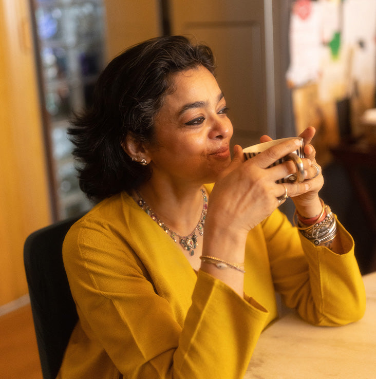 A - Trips to my mother’s locker with her, where spellbound, I’d watch her open up her precious pieces, kept in little potlis of soft mal handkerchiefs are perhaps my earliest and most fond memories of jewelry.