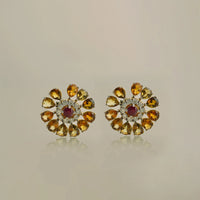 Mellowed sophistication with a hint of quirk is what the Dahlia ring stands for. The central unit featuring natural brilliant-cut diamonds is surrounded by delicate units of yellow tourmalines that shimmy with the movement of your hand, the highlight of this eccentric jewel.