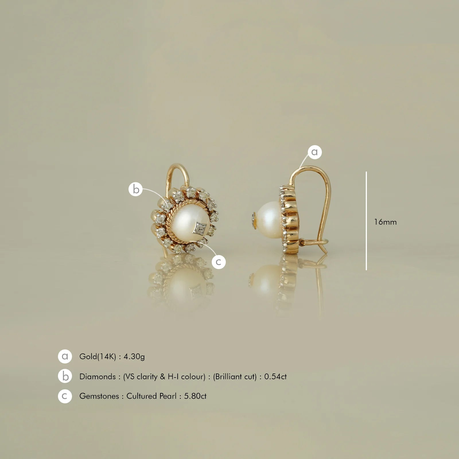 Pretty and petite, Zoe hits the sweet spot between modern and timeless. Each unit of the pair holds an exotic cultured pearl pierced with prong-set natural diamond and surrounded by a halo of more natural brilliant-cut diamonds.