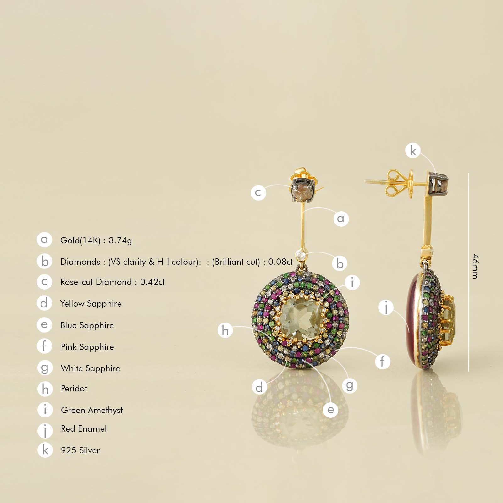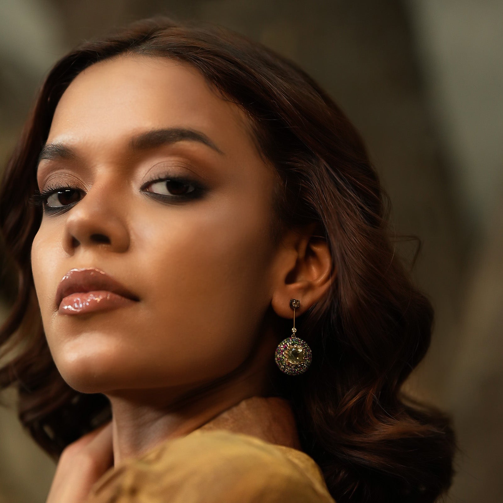 With over 100 precious gemstones set minutely with seamless shading, the Felix cocktail earrings are galaxies of vivid colors, reminding us of the star-studded expanse of the universe and the awe gazing into it brings.