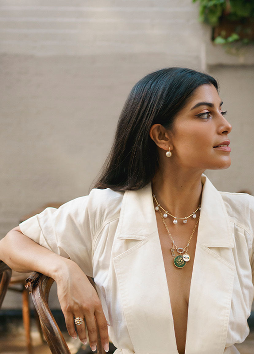 Exploring iconic forms, coupled with a few carefully curated new and old handcrafted techniques, our collection of earrings worked in gold and natural gemstones, is meant to stay. From day-to-day elegant essentials, to the more ornate designs, this range of earrings will take you through every facet of your life!