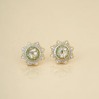 Like magical flowers plucked from Frances Burnett's Secret Garden, this ring features an eight-petalled flower surrounding a gorgeous, round-cut green amethyst, bordered by a halo of alternating emerald. The sparkle of the petals is owing to the pavé-set Natural Brilliant-cut diamonds. Want to know secret behind their unparallel charm? A pinch of magic dust we gathered from our visit to the Secret Garden!