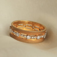 There's beauty is simplicity! We stand by this and this hoop is our attempt at just that. A plain matte finished band worked in gold with a centre band of prong-set diamonds.