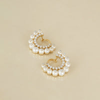 A perfect balance of pretty and playful, this elegant cocktail plays with space. Handcrafted in gold, this cocktail ring is dressed in arcs of natural diamonds and graduating cultured pearls pierced with natural brilliant-cut diamonds. We'd advise you to wear it solo-a piece like this deserves to take center stage.