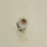 Sophisticated, brilliant, and eccentric, these drop earrings remind us of Belle from Beauty and the Beast in her iconic yellow ball-gown! A square-shaped, cushion-cut cognac quartz graces the center of each stud, surrounded by natural brilliant-cut diamonds. The twisted gold wire gives them their elevated eccentricity.