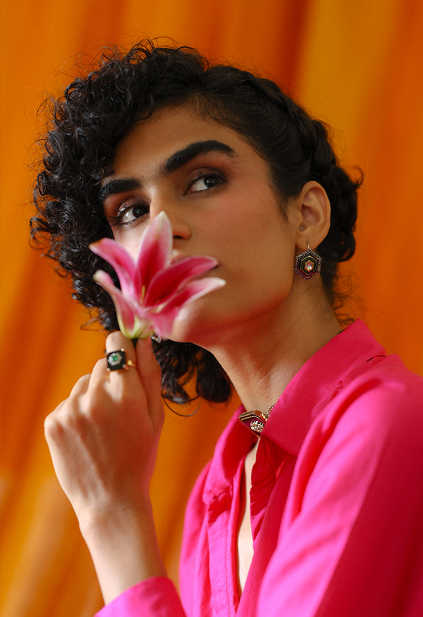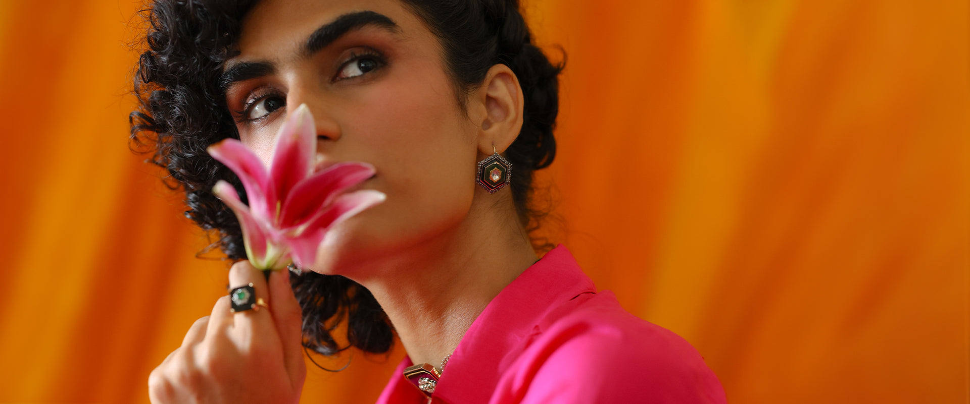 caro, draws inspiration from iconic forms, highlights clean lines coupled with a neutral color palette and carefully selected gemstones to accompany your everyday wardrobe. signature handcrafted techniques transform the beauty of these basic forms into precious pieces of fine jewelry.