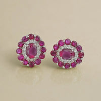 Add an effortless sense of glamor to your daily wardrobe with Azure, a versatile ring that goes well with jeans and a shirt, a satin gown, as with a cocktail dress! At its heart sits a pretty, faceted ruby, nestled in a halo of natural brilliant-cut diamonds. The natural diamonds are further surrounded by a halo of faceted rubies. The natural diamond-encrusted shank take the cake!
