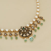 Our unmistakable identity, our signature colors, and the artisanal skills that come into play when reviving an old technique are what this design stands for! The iconic Indian crescent motif has skillfully been handcrafted with unique gold and gemstone elements along with natural uncut diamonds, pearls, and gold balls.