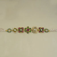 A juxtaposition of asymmetrical units, the Tanjore Bracelet is an epitome of culture meeting craft. The raw beauty of Natural polki/uncut diamonds, emeralds, glass-filled rubies and other colored stones, all brought together on the canvas of gold using a mix bag of time-honored techniques, ensue in a piece of fine jewelry is a dialogue between the timeless grace of Indian design and the pulse of modern aesthetics.