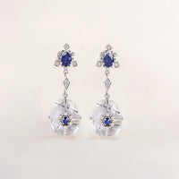 Our design ideology welcomes the raw and the edgy. A faceted rutile quartz takes a geometric form dressed with diamonds and a signature pop of color, narrated through blue sapphires. Perfect to add some colour to your formal wardrobe and easy to create a layered look for your casual outfits.