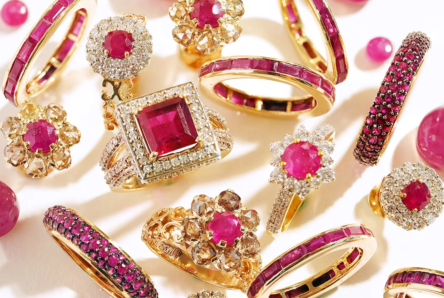 Rubies held sacred as the emblem of the sun God. Numerous early cultures believed, because of the stone's likeness to the color of blood, that rubies held the power of life. It is also believed that they inspire creativity, wisdom, and love. Explore from a range of classic jewels designed with beautiful rubies.