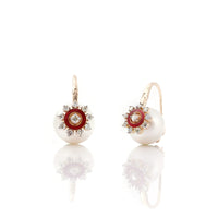 Handcrafted in gold and 925 silver, this pendant features the Tree of Life motif in jaliwork, a representation of the immortal spirit of Ahmedabad, a 600-year-old lived heritage city of India. Beneath the jaliwork is a layer of rich, vibrant red enamelwork. The pendant is bordered with prong-set natural rose-cut diamonds and is suspended from a pearl chain.