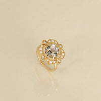 Handcrafted in gold, the Sana earrings are little treasures of the past to be cherished in the now. With a raw natural uncut diamond at their heart, in an open claw setting (Pachchikam), bordered by seed pearls, these earrings bring together the charm of the quaint with the design language of the contemporary.