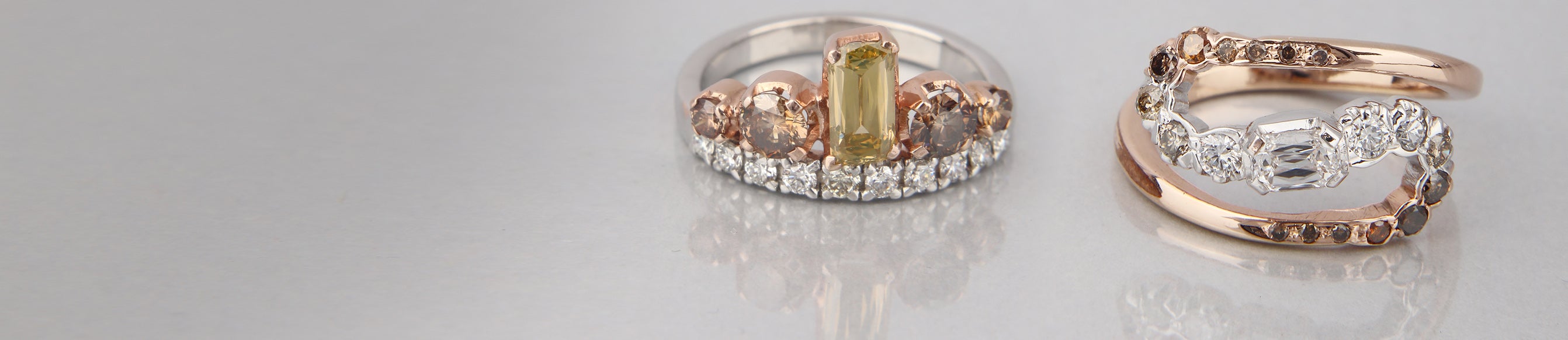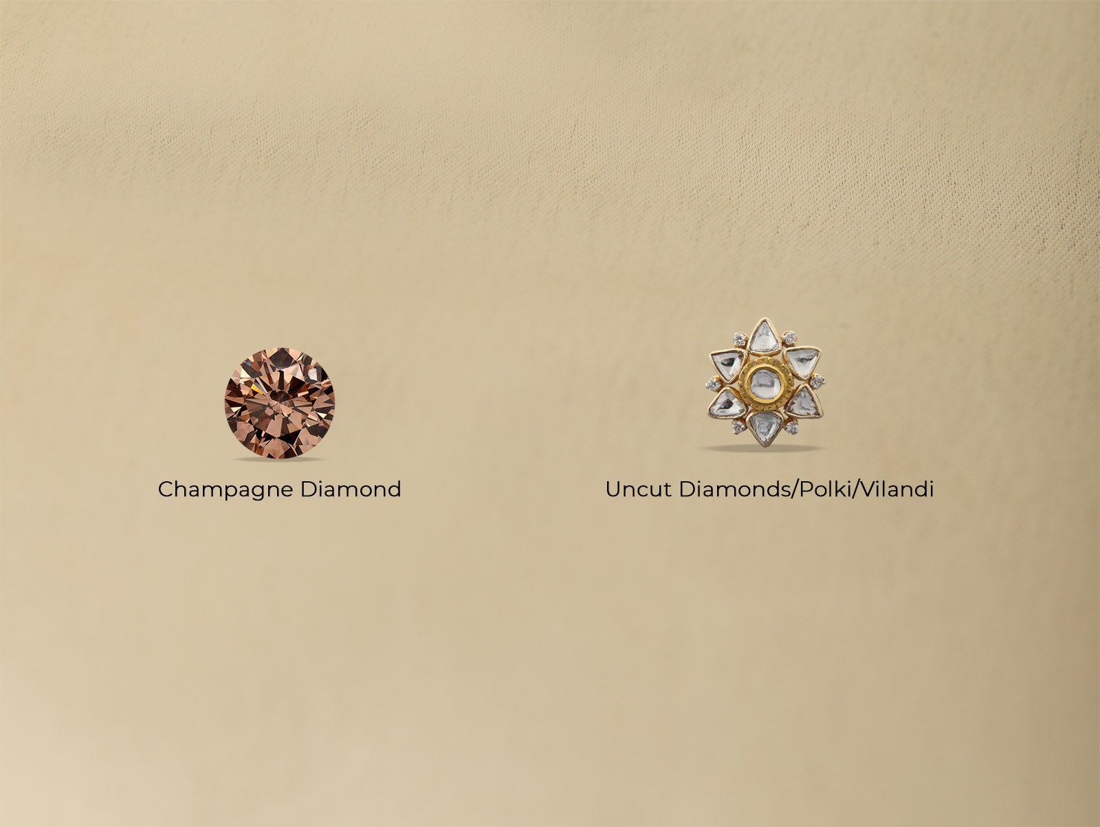 Champagne Diamond : Though white is the most famous, diamonds actually occur in lots of colors and champagne is one of our favorites. Naturally brown with a yellow tint, these diamonds add extra romance to our designs. Best of all, you get all the virtues of a natural diamond like superior hardness and incredible fire.