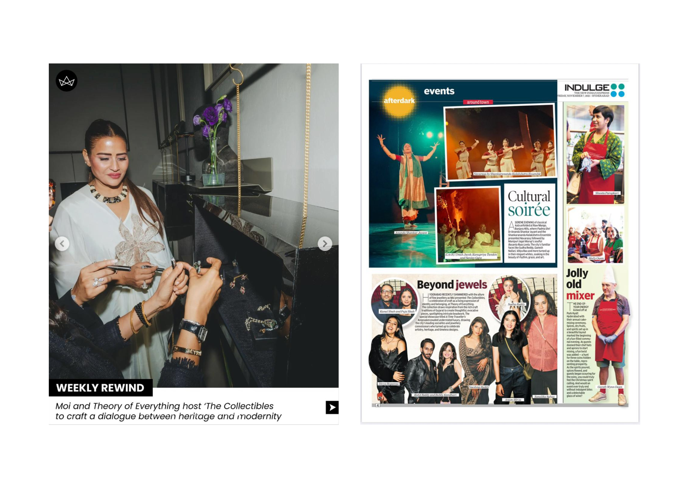 Left Image: Lifestyle Asia - Moi Fine Jewelry x Theory of Everything come together for ‘The Collectibles’, a showcase that bridges heritage craftsmanship with a modern design language. Right Image: Indulge by The New Indian Express, Hyderabad.