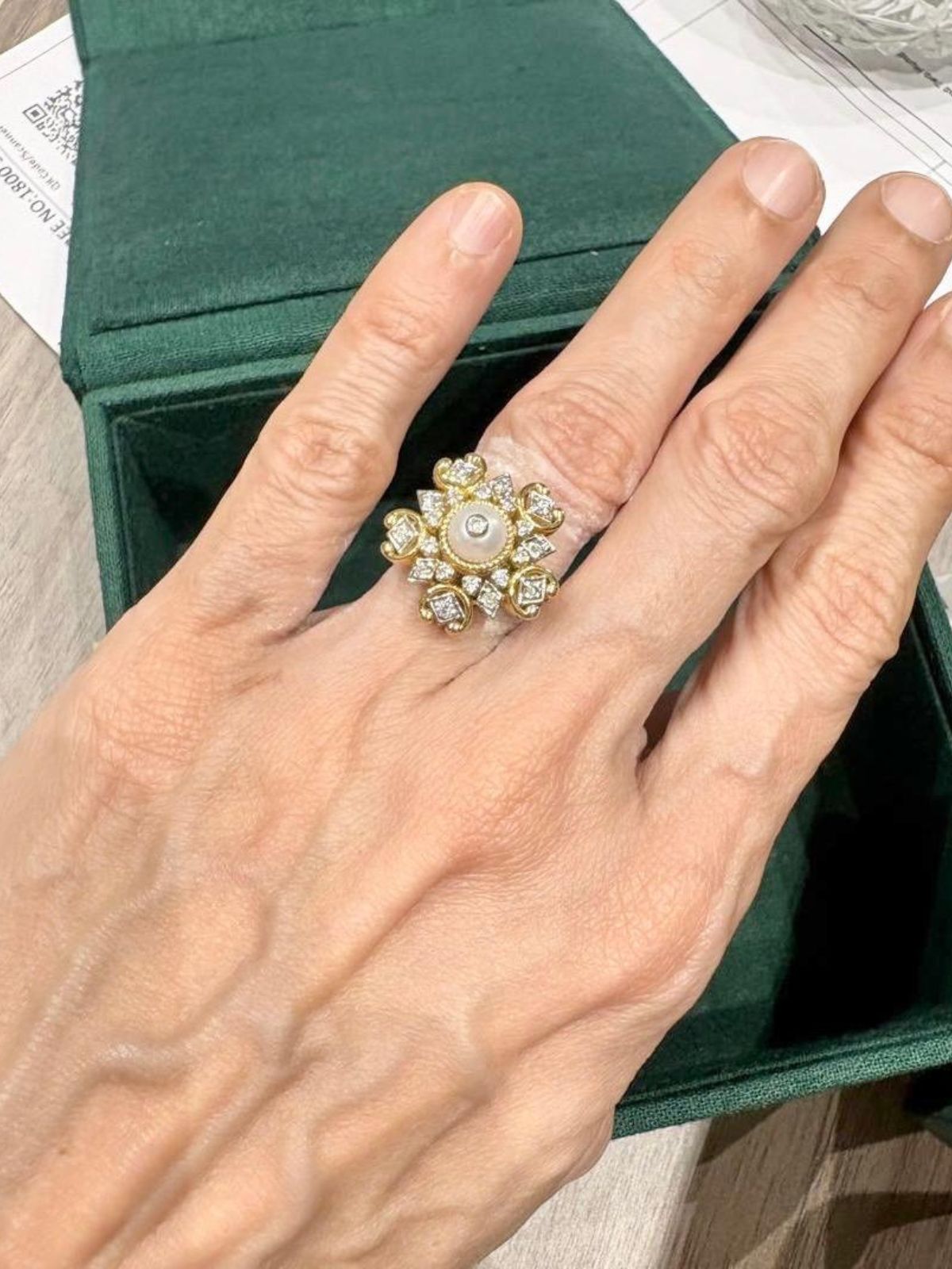 Rikta Karia flaunts her stunning Cerys emerald ring and expresses her admiration for Moi aesthetics."